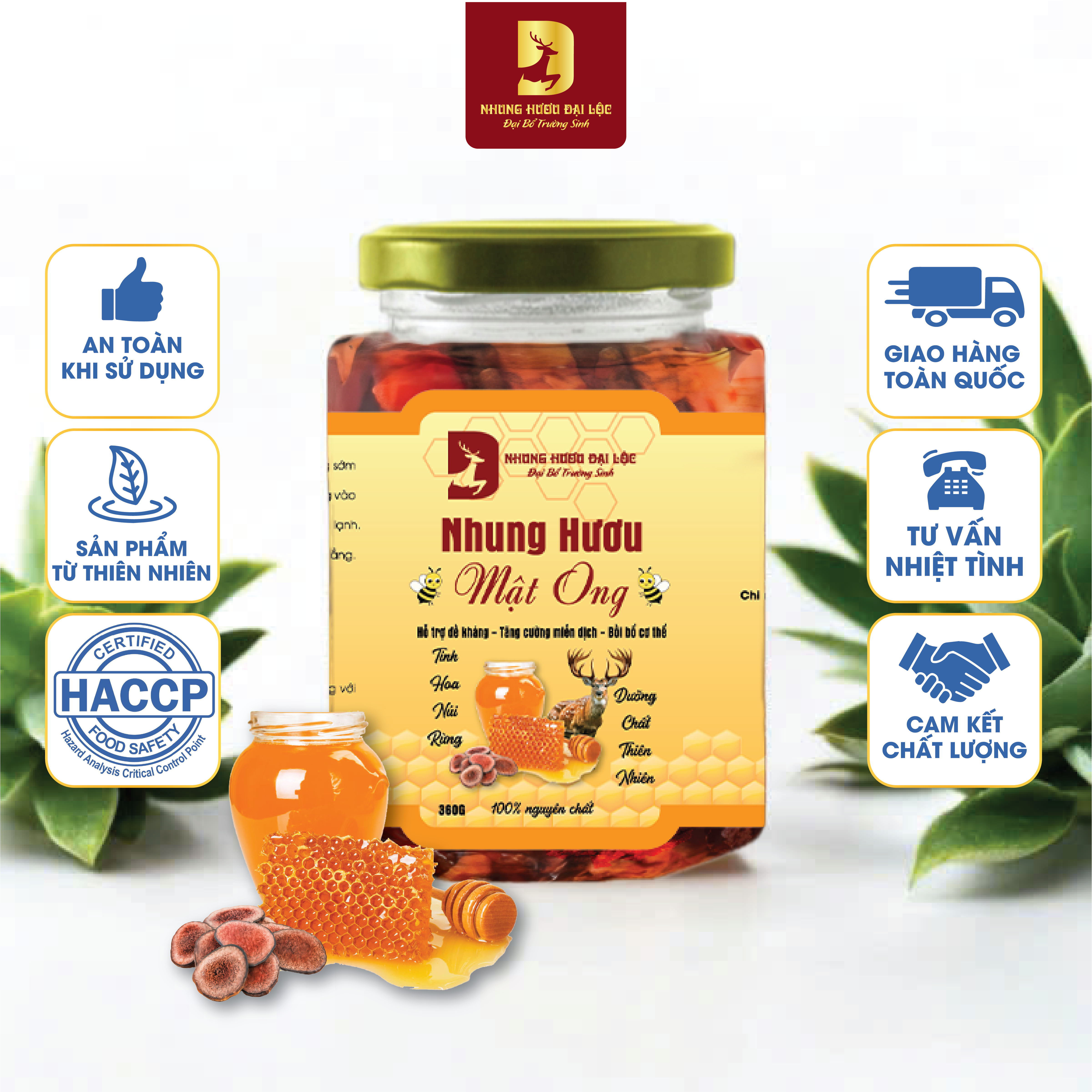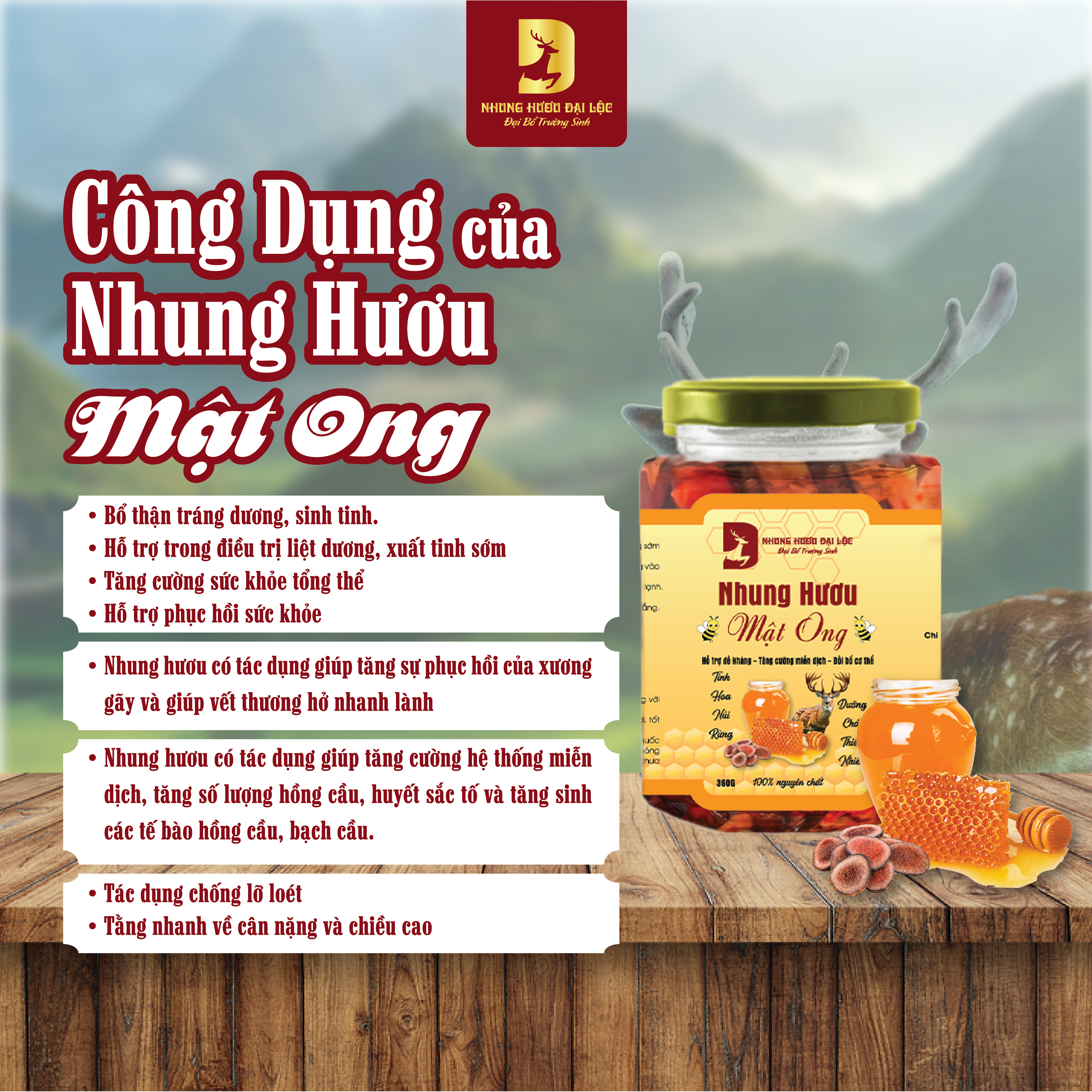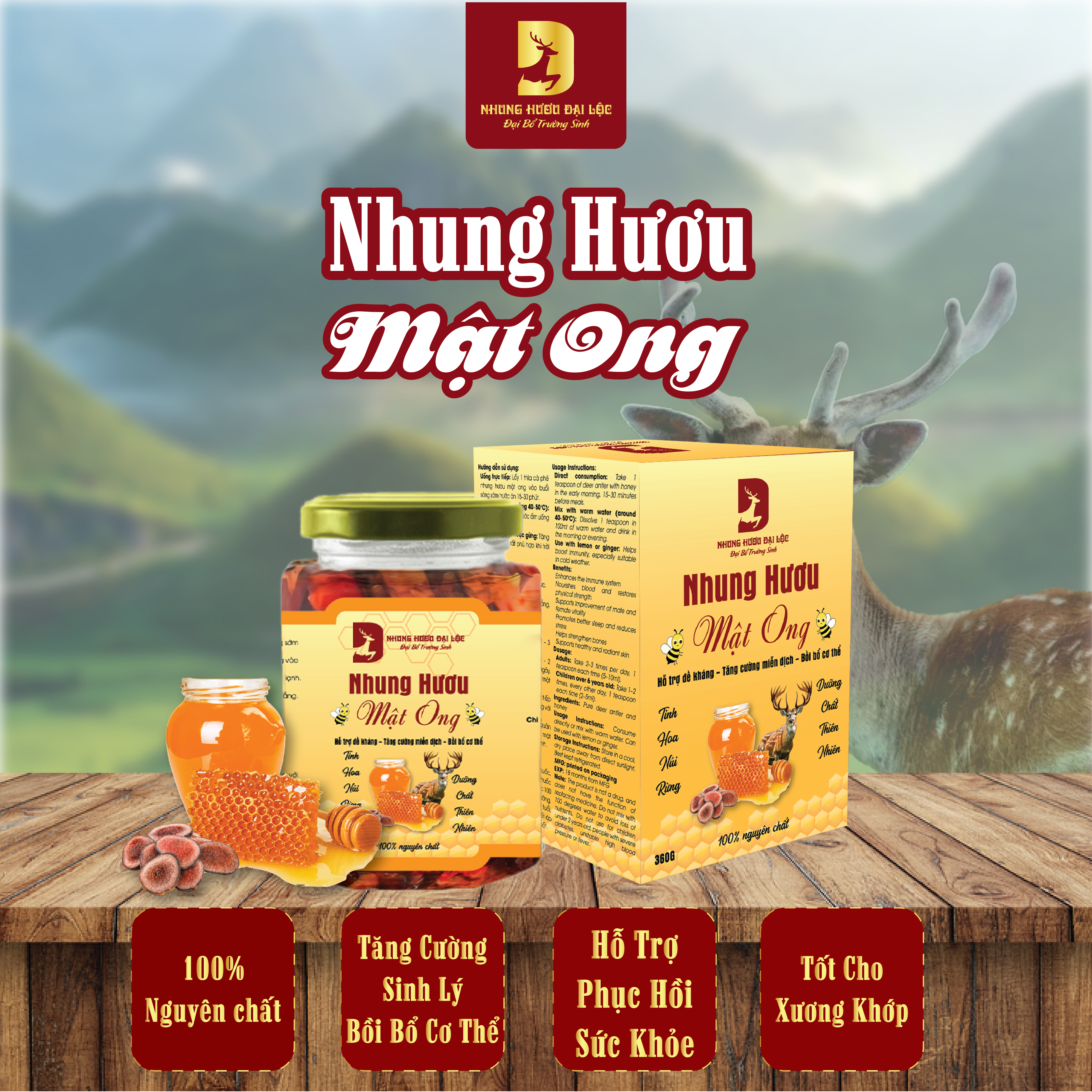 Thành phần sản phẩm: Mật ong, Nhung hươu.