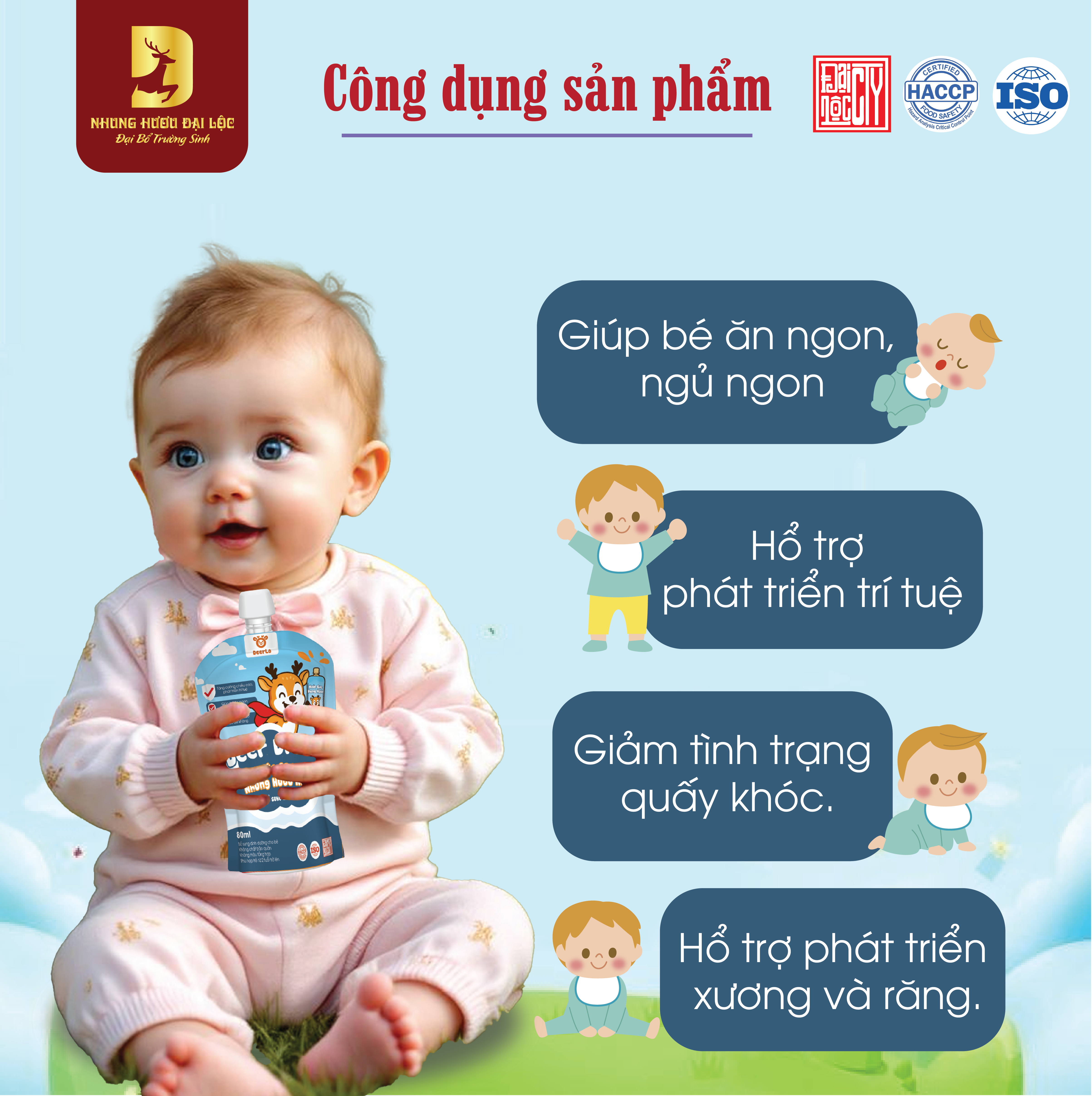 - Nâng cao sức đề kháng gạc nhung hươu non và các thành phần tự nhiên khác giúp tăng cường hệ miễn dịch, giúp trẻ ít ốm vặt hơn, khỏe mạnh hơn.